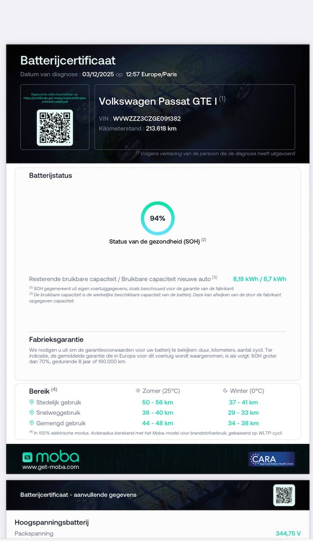 Accu: 9 kWh, Conditie: 94%, Type lithium-ion
