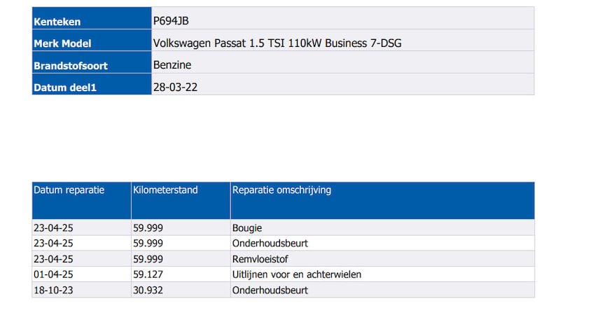 | BTW auto | Ja, incl. BTW |