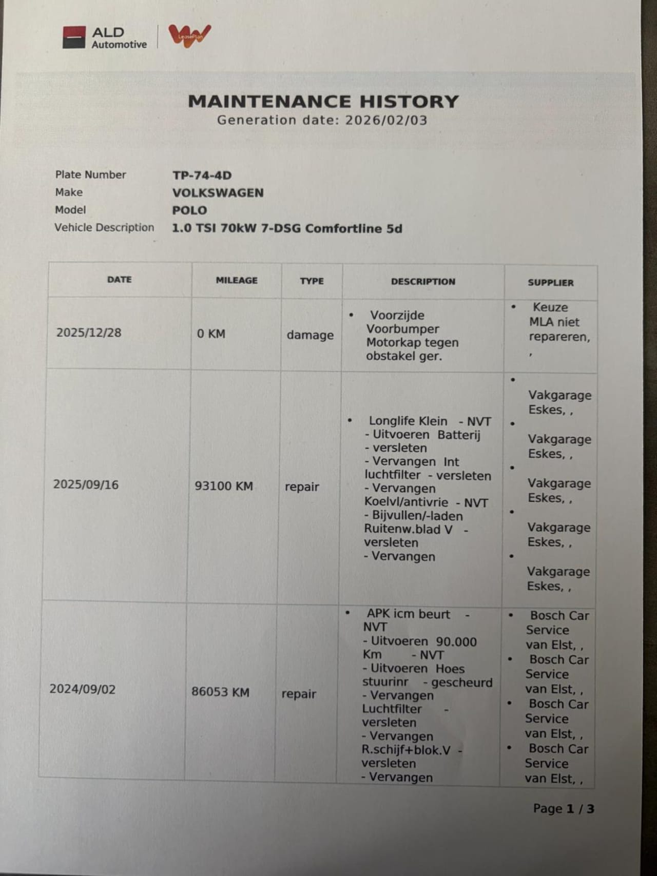 1.0 TSI Comfortline 5 Drs. NAP NL Auto BTW