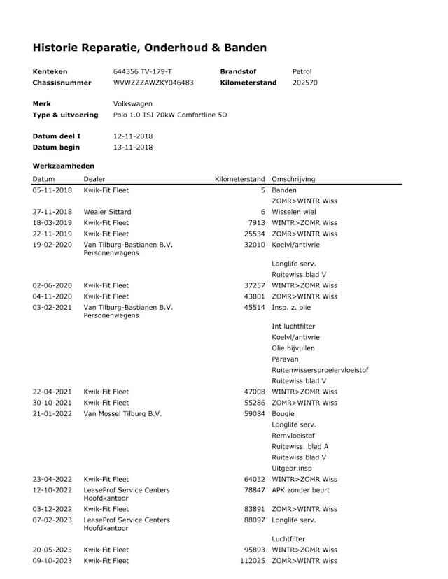 - Onderhoudshistorie aanwezig: Ja