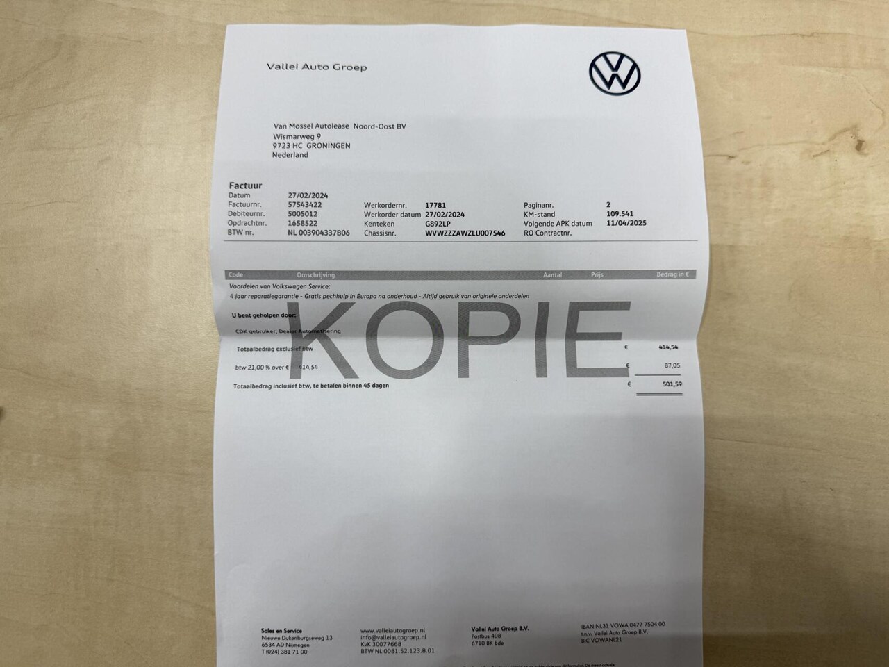 | BTW auto | Ja, incl. BTW |
