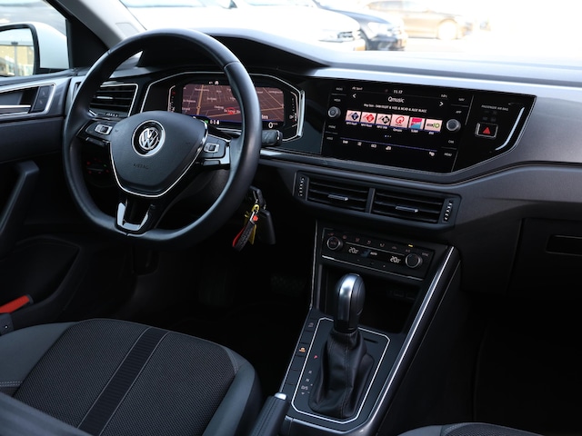 De indeling van het digitale dashboard is zo ingericht dat je met één blik precies weet wat je weten wilt. Alles vrij achter? De achteruitrijcamera laat het meteen zien. Adaptive cruise control houdt de ingestelde snelheid vast en houdt automatisch afstand tot jouw voorligger. Het full map navigatiesysteem en het audio-installatiesysteem (met DAB-ontvangst!) bedien je met knoppen op het stuur. Deze Volkswagen Polo is voorzien van sensoren aan de achterzijde om een achteropkomend verkeer waarschuwing te geven als de afstand tussen jou en een achterligger te klein is. En dan is deze auto ook nog eens voorzien van automatische airconditioning, lederen stuur, boordcomputer en lederen versnellingspook.