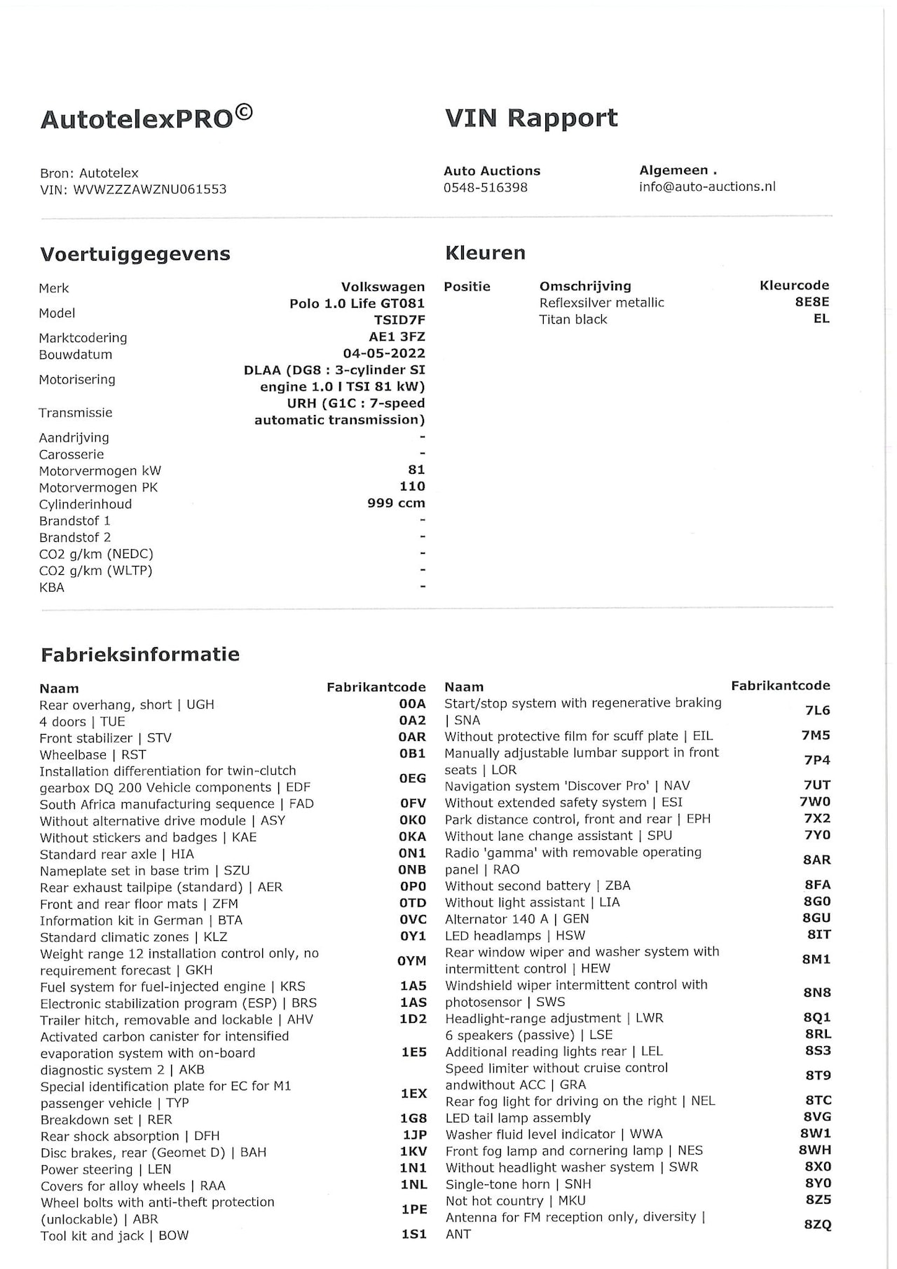 | BTW auto | Ja, incl. BTW |