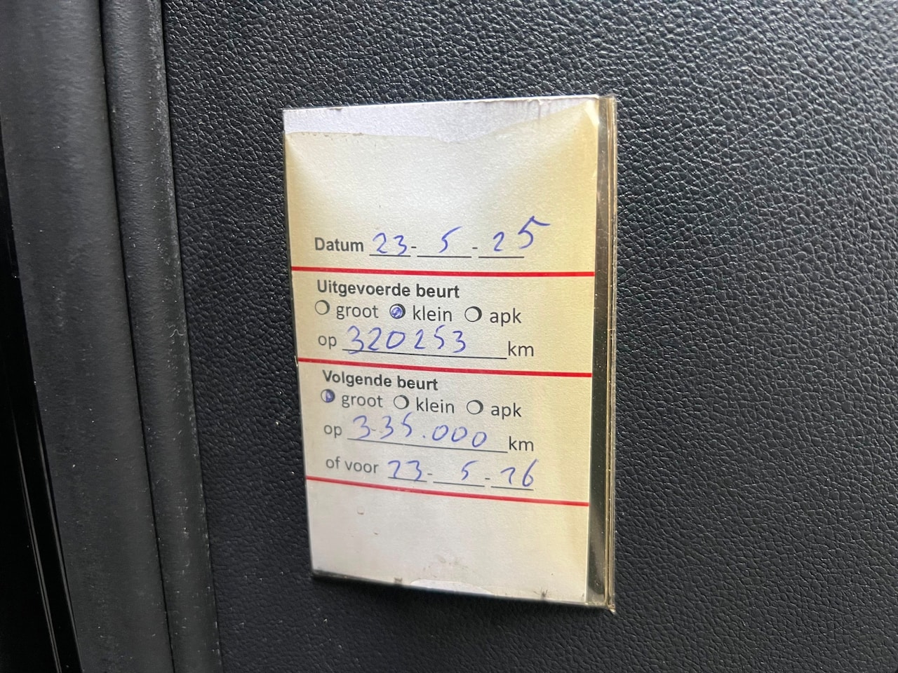 | APK | Bij aflevering |
