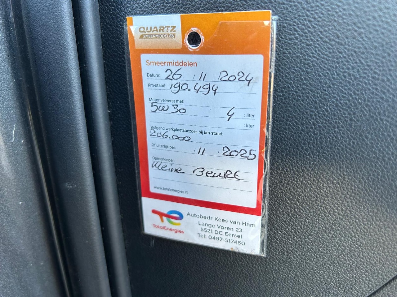 | APK | Bij aflevering |