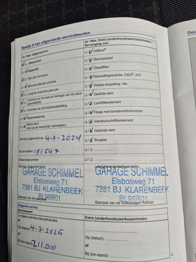 Onderhoudsboekjes: Aanwezig