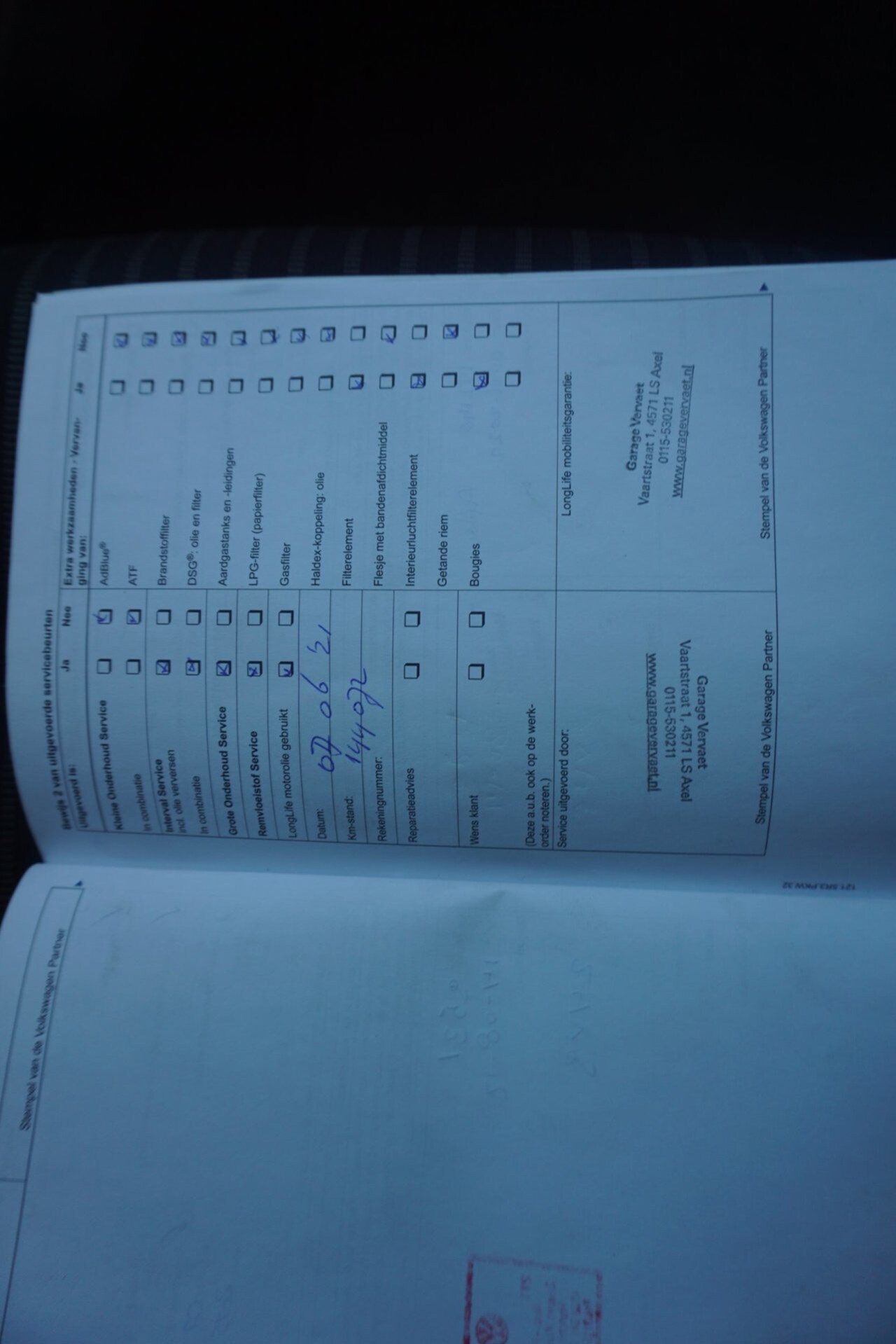 | APK | Bij aflevering |