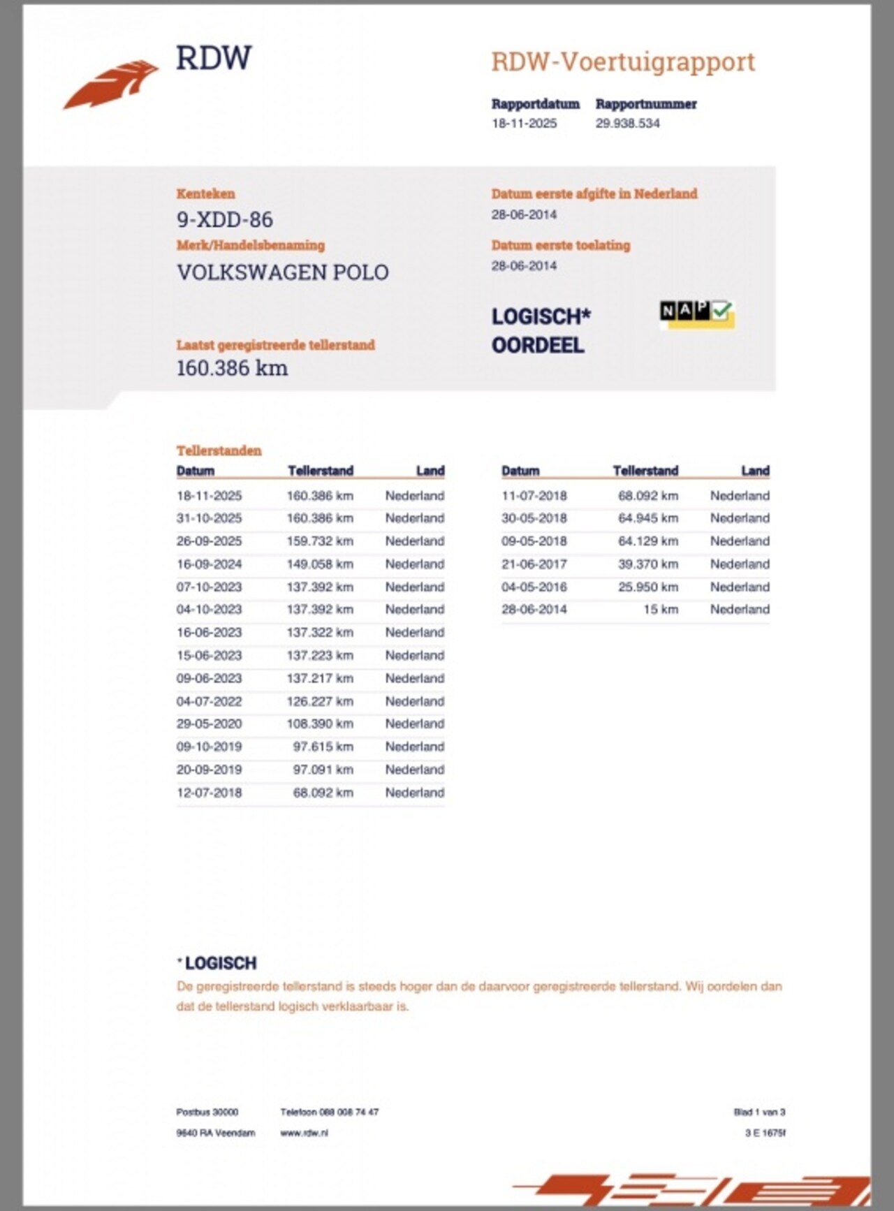 | Kilometerstand | 160.386 km |