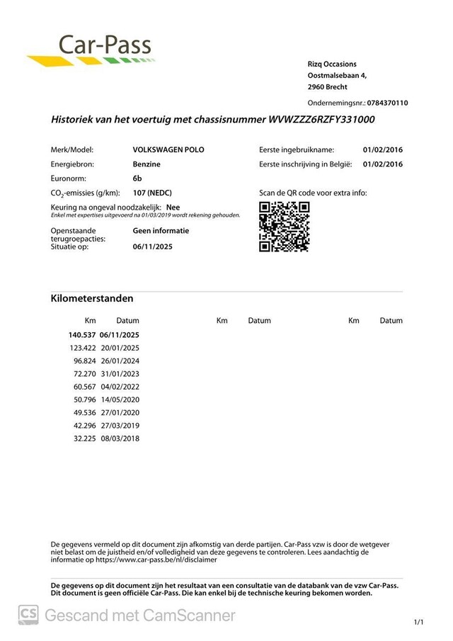 Deze Volkswagen Polo is afkomstig uit België en ingeruild door de eerste eigenaar. De kilometerstand is gecontroleerd en aantoonbaar via Car-Pass, het Belgische systeem dat vergelijkbaar is met de Nederlandse NAP.