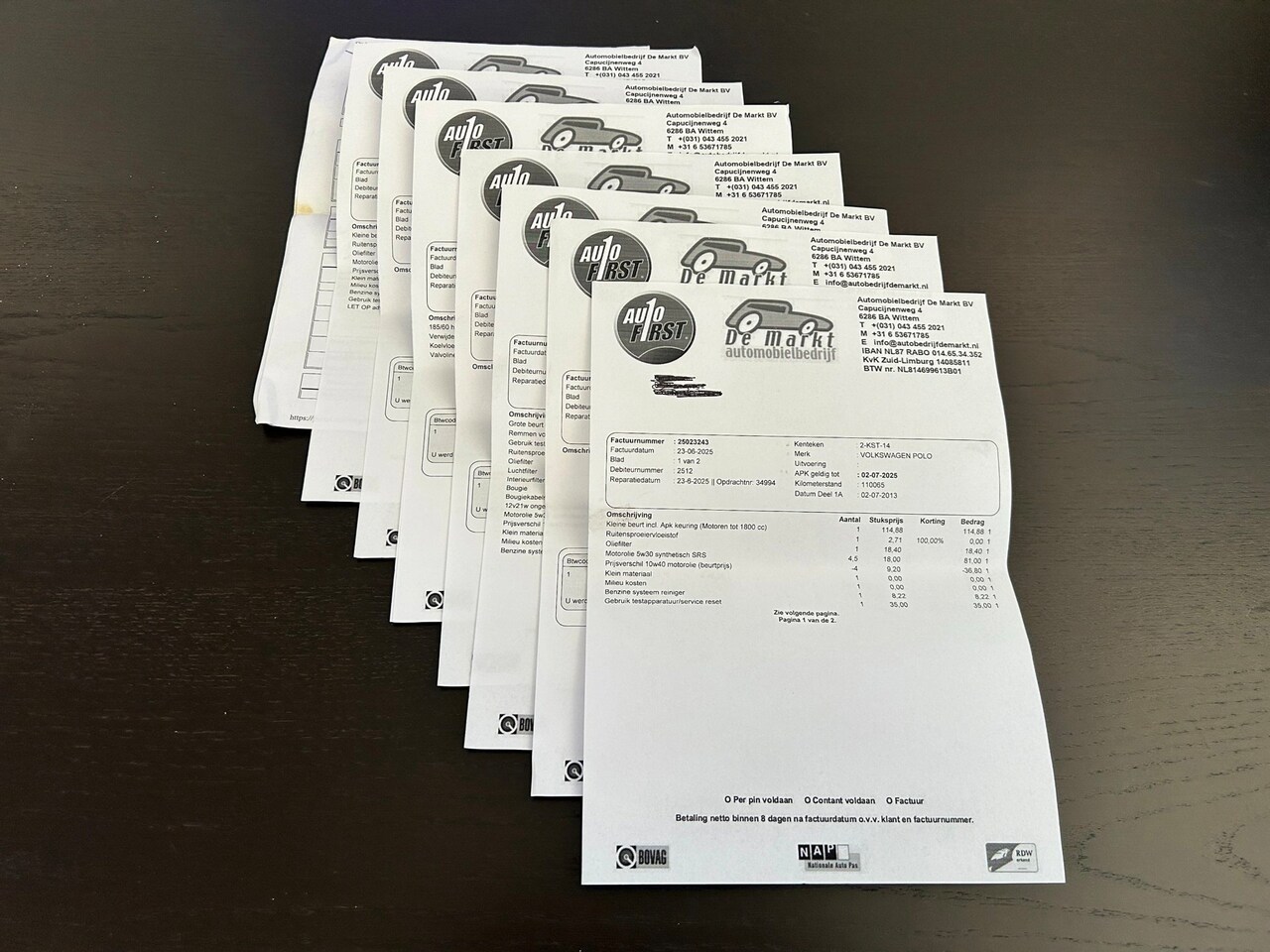 | APK | Bij aflevering |