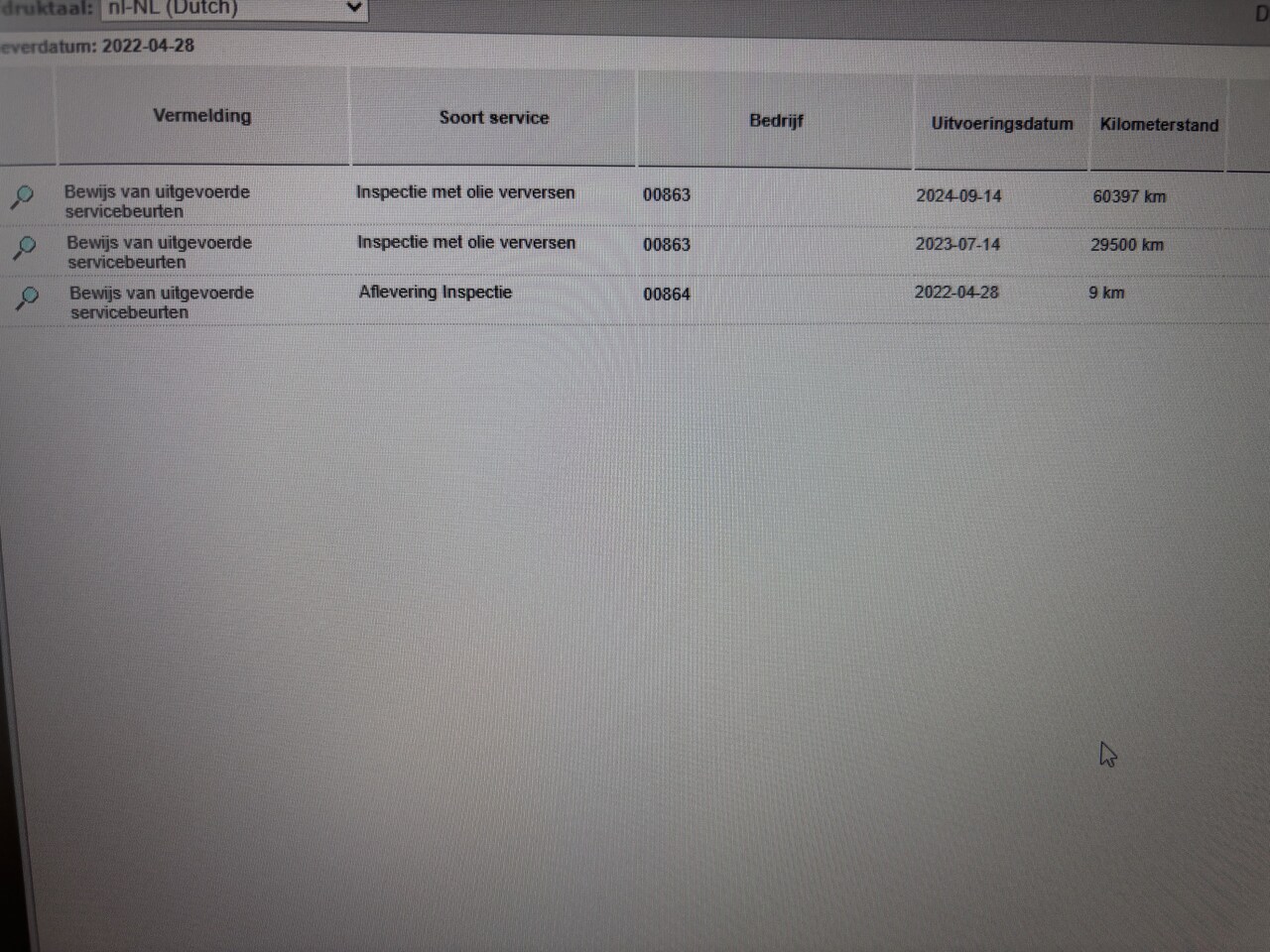 | APK | Bij aflevering |