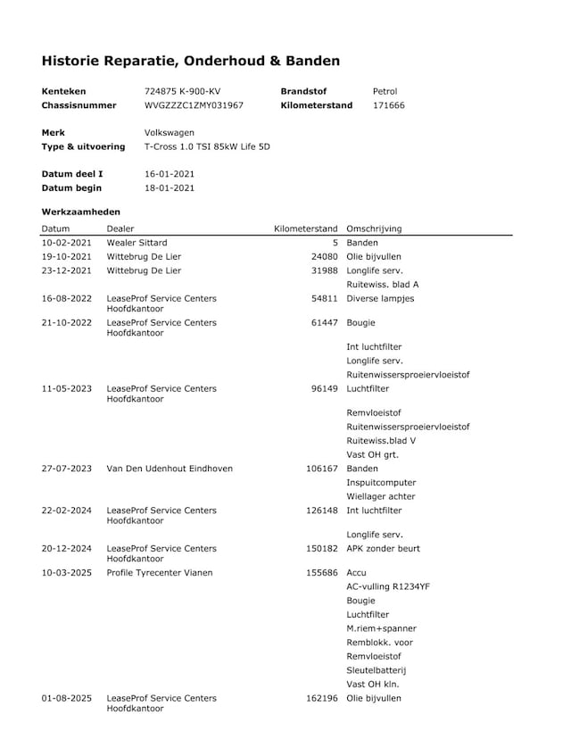 - Onderhoudshistorie aanwezig: Ja