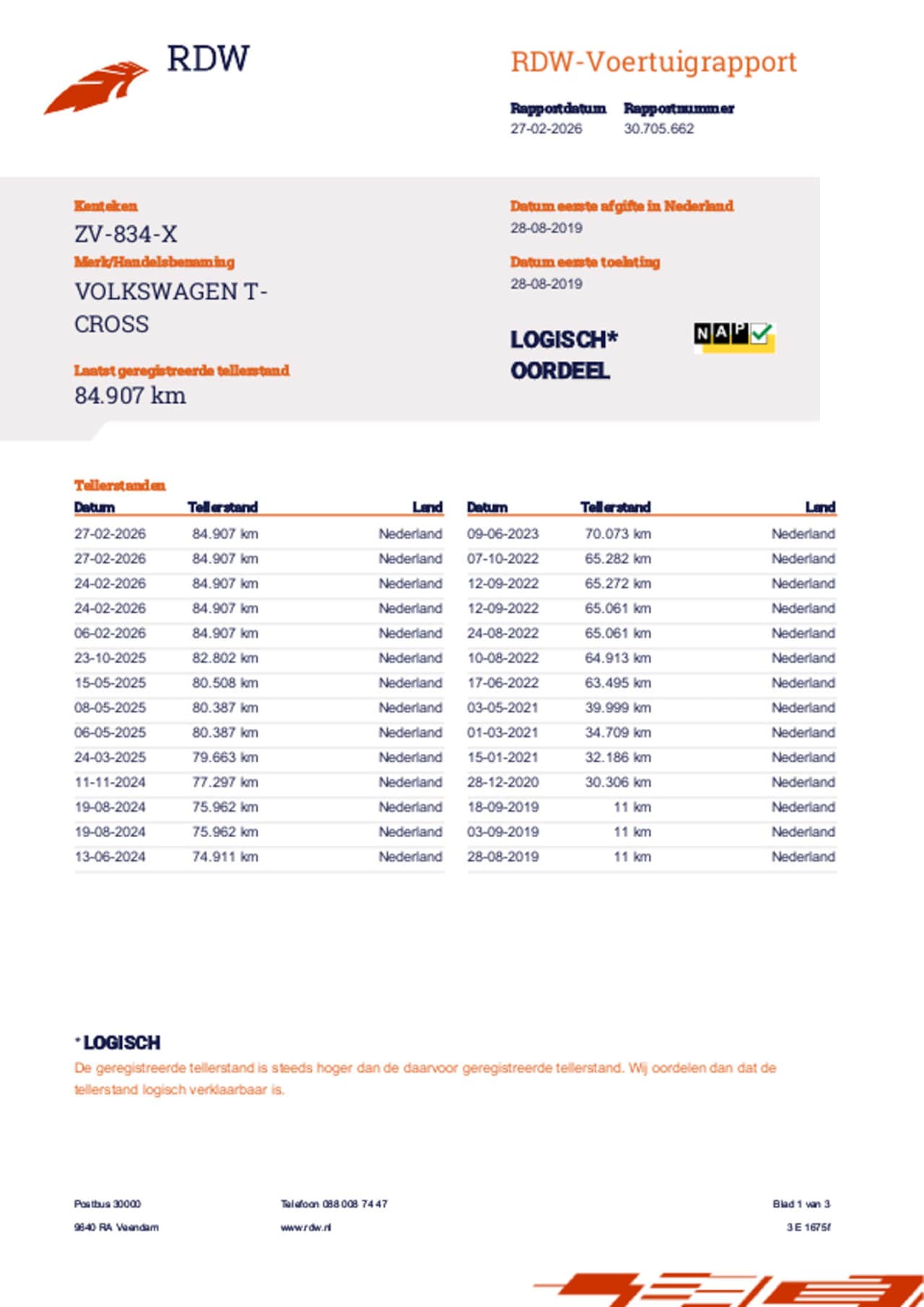 | Kilometerstand | 84.908 km |