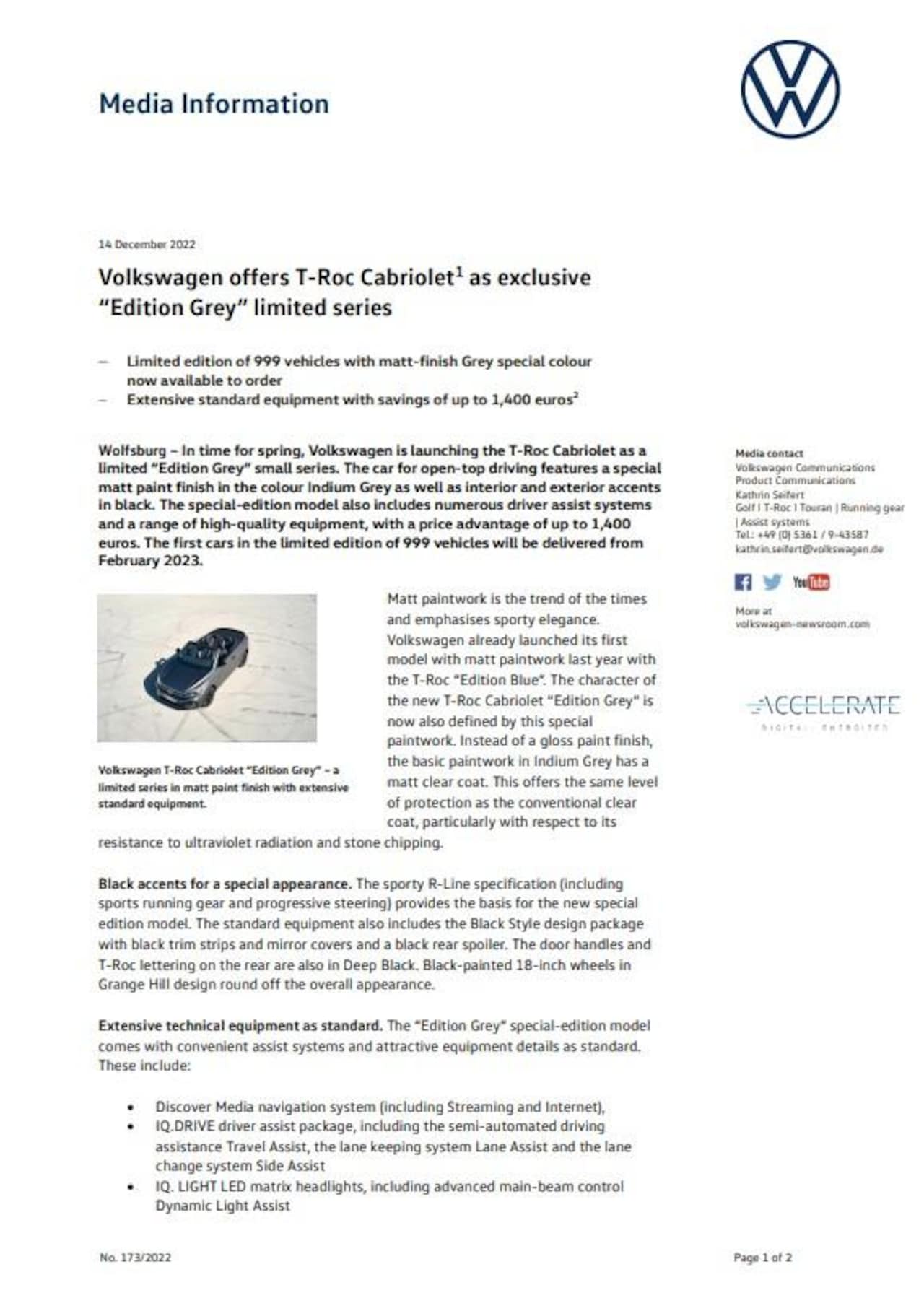 Volkswagen T-Roc Cabrio - 1.5 TSI R-Line Edition Grey | 150 PK | One of 999 | Matte Zwart | Automaat | Digital Cockp