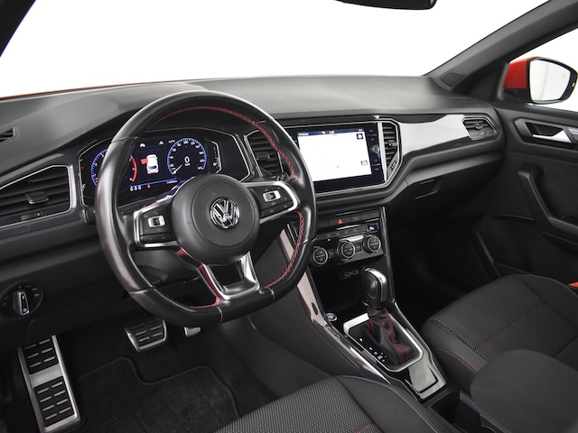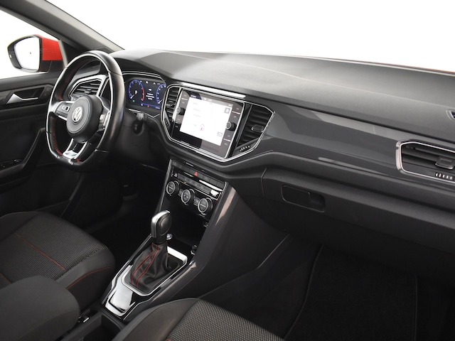 Met zijn dynamische eigenschappen belooft deze Volkswagen T-Roc u een heleboel rijplezier. Hij is ontwikkeld op een geavanceerd onderstel en biedt altijd een veilig weggedrag. In deze Volkswagen T-Roc gaat u zeker bekijks hebben, want de R-Line styling trekt de nodige aandacht. Niet voor niets is de vraag naar gebruikte Volkswagens zo groot, want de kwaliteit staat ook na een aantal jaren nog buiten kijf, zoals aan deze T-Roc duidelijk te zien is. De aandrijving komt voor rekening van een benzinemotor en een automatische transmissie. Uitstekende zitsteun en een strakke look? Daar zorgen de sportstoelen voor! Licht en lucht komen onbelemmerd binnen als het elektrisch bediende glazen panoramadak met één druk op de knop wordt geopend. Een handige voorziening op deze auto is de elektrische achterklep die u op afstand kunt openen. Bij de rijke uitrusting horen ook 18 inch lichtmetalen velgen, LED koplampen, sportonderstel, extra getint glas, in delen neerklapbare achterbank en LED-achterlichten. Een cockpit, een informatiecentrum... Wat is de cabine eigenlijk niet? Dankzij het digitale dashboard bent u van alles op de hoogte. Bij het inparkeren hoeft u het laatste stukje niet te gokken: de achteruitrijcamera kijkt voor u uit. Adaptive cruise control is veilig en comfortabel. De snelheidsregelaar houdt automatisch afstand tot het voertuig dat voor u rijdt. Waar u zelf ook bent, u staat altijd in contact met de auto via de app op uw smartphone. Zo controleert u uiteenlopende functies, ook op afstand. Deze Volkswagen is voorzien van spraakbediening voor het full map navigatiesysteem en voor het audio-installatiesysteem met DAB-ontvangst. Maar u kunt ook de knoppen op het stuur gebruiken. Met automatische airconditioning, sportstuur met schakelpaddels, draadloos opladen, regensensor, keyless entry en automatisch dimmende binnenspiegel is deze Volkswagen helemaal compleet. In de Volkswagen T-Roc heeft uw veiligheid en die van uw omgeving prioriteit. Belangrijk voor uw veiligheid en die van uw passagiers is de verkeersbord-detectie in deze auto. Het Lane-keeping systeem registreert permanent of u binnen de lijnen van de rijstrook blijft; dwaalt u onbedoeld af, dan waarschuwt het systeem en corrigeert de koers. Het systeem van forward collision warning, of in gewoon Nederlands 'botswaarschuwing', treedt in werking als de sensor te weinig afstand signaleert met een voor- of tegenligger. Verder is deze auto uitgerust met dodehoekdetectie, hill hold functie, vermoeidheidsherkenning, autonoom remsysteem en bandenspanningcontrolesysteem. Natuurlijk kunt u de kwaliteiten van deze auto pas echt beoordelen na een proefrit. Neem nu contact met ons op, dan zetten wij hem voor u klaar.