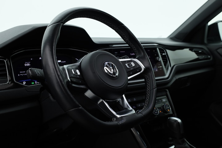 Volkswagen T-Roc 1.5 TSI Sport DSG voorzien van o.a. panoramadak, afneembare trekhaak, elektrische achterklep, stoelverwarming, dodehoek detectie, Apple CarPlay en Android Auto, navigatiesysteem, achteruitrijcamera, 19 inch lichtmetalen velgen, keyless entry en go, digitaal dashboard etc.