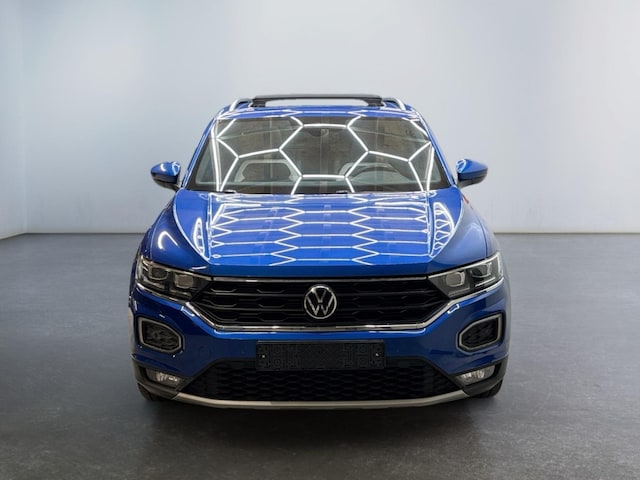 De auto is uitgerust met vele luxe opties zoals een panoramisch schuif/kanteldak, virtual cockpit, stoel- en stuurverwarming, en een afneembare trekhaak. Dankzij de halflederen sportstoelen, het R-Line sportstuur en de adaptieve cruise control biedt deze T-Roc een sportieve rijervaring met het comfort van een premium SUV.