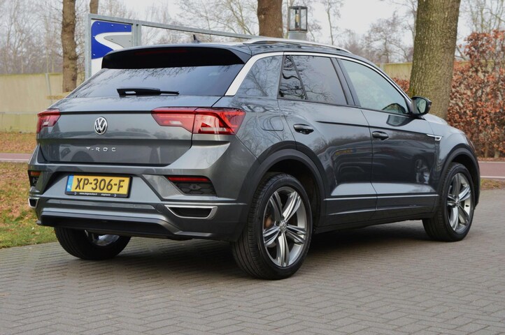Volkswagen T-Roc 1.5 TSI Sport R-line, voorzien van o.a.: DSG, automatische airco, virtual cockpit, R-line interieur, R-line exterieur, privacy glas, full-map navigatiesysteem, Apple Carplay/AndroidAuto, 18" R-line velgen, multifunctioneel lederen stuurwiel, adaptive cruise control, achteruitrijcamera, parkeersensoren voor en achter, LED koplampen, LED achterlichten, LED dagrijverlichting, afneembare trekhaak, onderhoudshistorie volledig aanwezig.