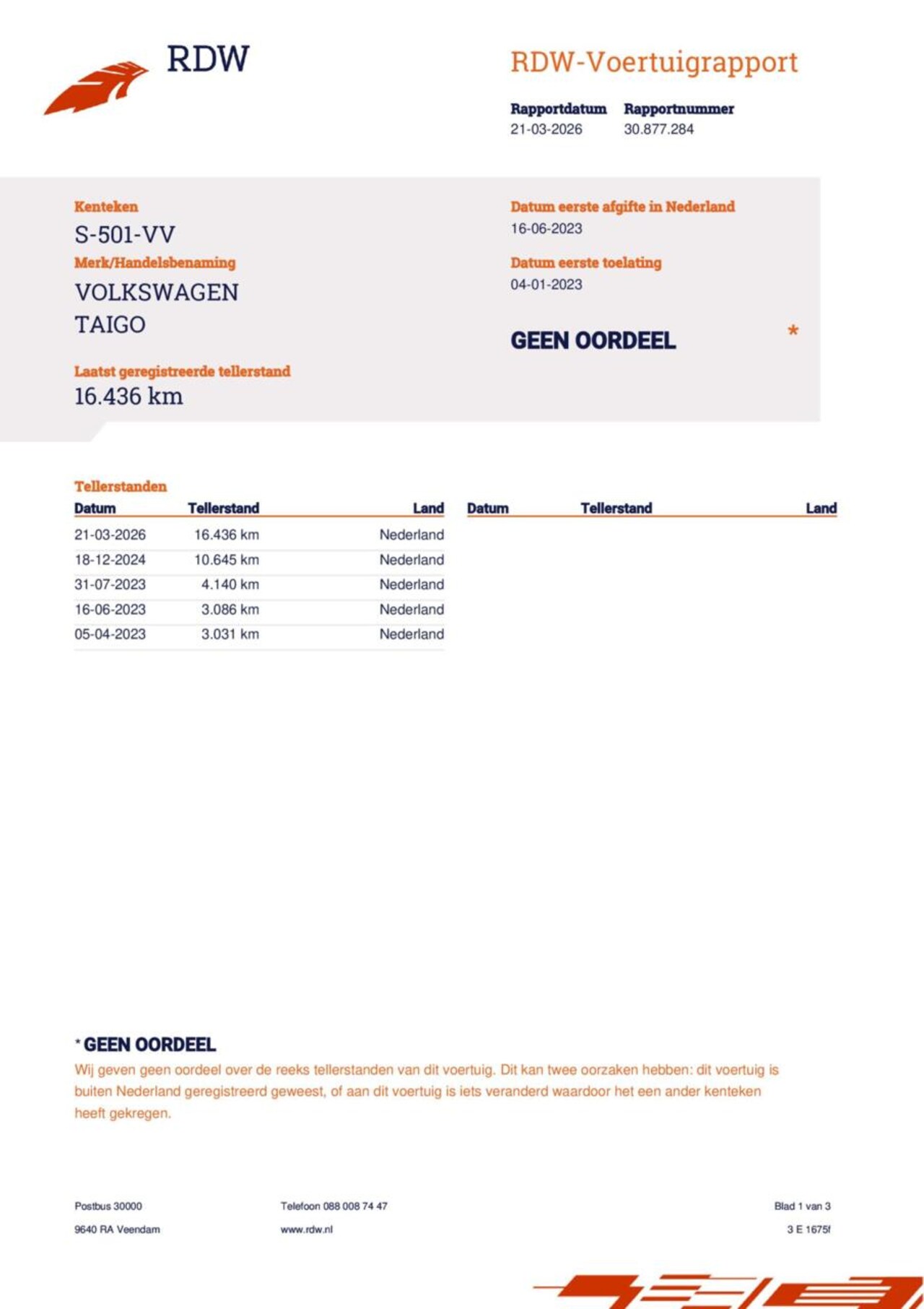 | Kilometerstand | 16.436 km |