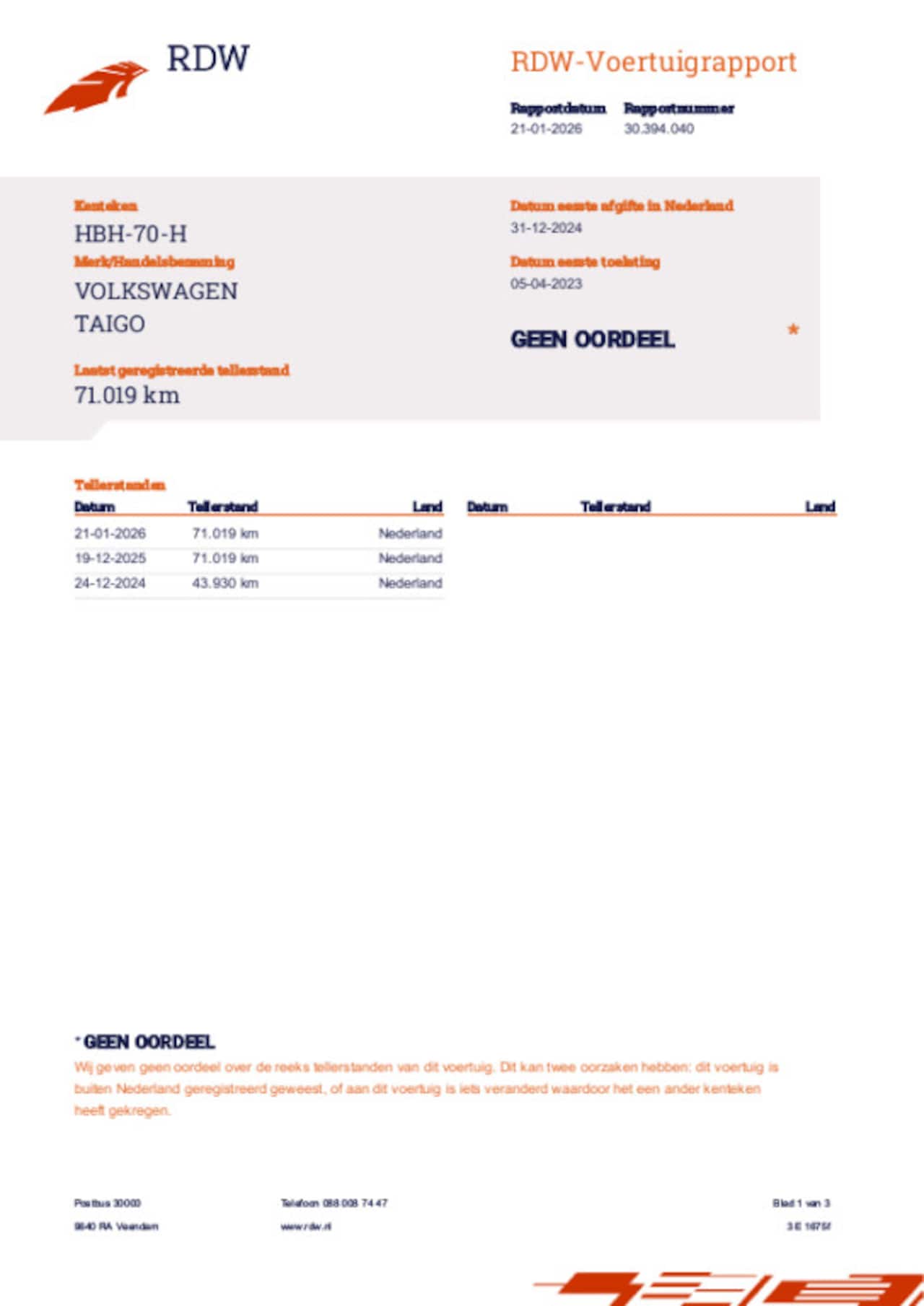 | Kilometerstand | 71.019 km |