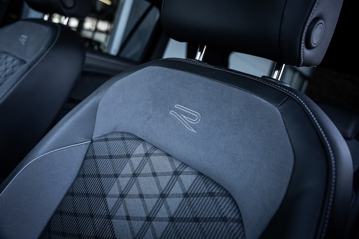 Binnenin geniet u van een modern en hoogwaardig interieur met onder andere comfortstoelen gedetailleerd met het R logo, een volledig digitaal instrumentenpaneel, multifunctioneel sportstuur, automatische airconditioning met separate zone achter, draadloze telefoonlader en een navigatiesysteem met full map weergave. Dankzij het Head-Up Display houdt u belangrijke rijinformatie veilig in het zicht.