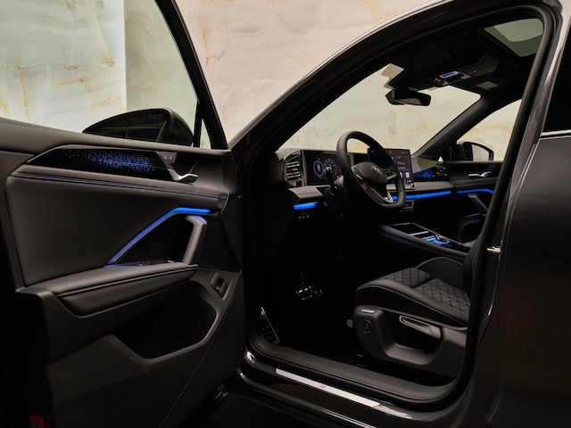Het comfortniveau ligt bijzonder hoog dankzij onder andere Climatronic 3-zone airconditioning (KH7), verwarmbare ruitensproeiers (9T1), elektrisch bedienbare achterklep met virtueel pedaal (5I6) en een middenarmsteun (6E3). De sport-comfortstoelen (Q4H) met massagefunctie (4D7) en stoelverwarming (4A4) maken elke rit ontspannen. Ook aanwezig zijn sfeerverlichting (QQ9) en buitenambienteverlichting (UD8).
