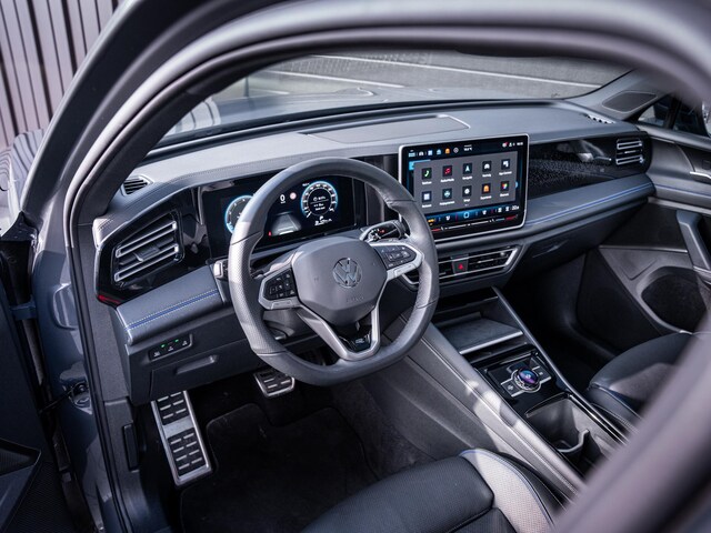 Het sportieve karakter wordt direct duidelijk door het R-Line exterieur met zijn krachtige uitstraling en de imposante 20-inch R-Line velgen. Binnenin zet deze lijn zich voort met een stijlvol R-Line interieur, afgewerkt met zwart lederen stoelen en subtiele blauwe details die het geheel een exclusieve en dynamische uitstraling geven.