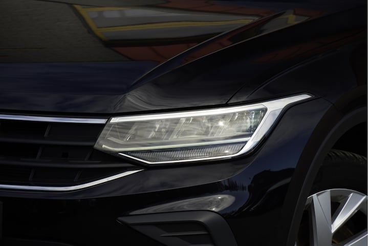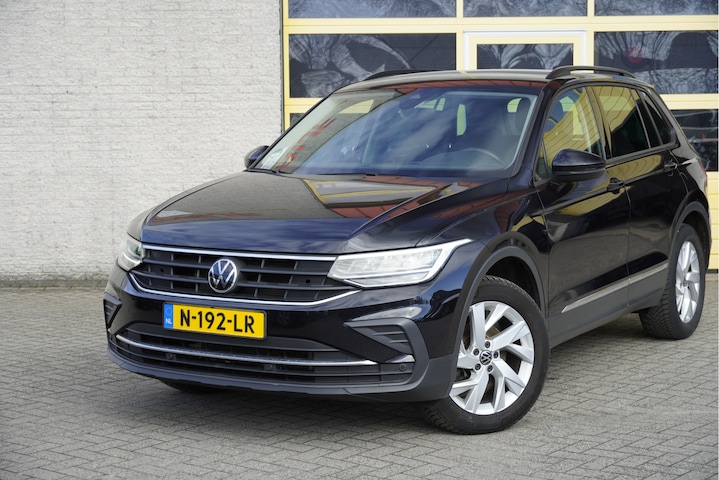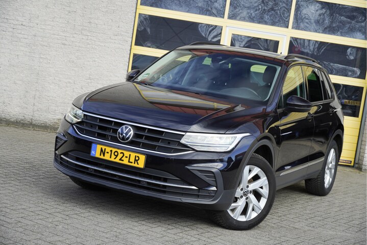 Volkswagen Tiguan met de zeer luxe aanwezige opties als Lichtmetalen velgen 18" | Led dagrijverlichting | Led koplampen | Led achterlichten | Parkeersensoren | Elektrische achterklep | App-Connect | Navigatiesysteem | Climate control | Cruise control | Verwarmde voorstoelen | Extra getint glas.