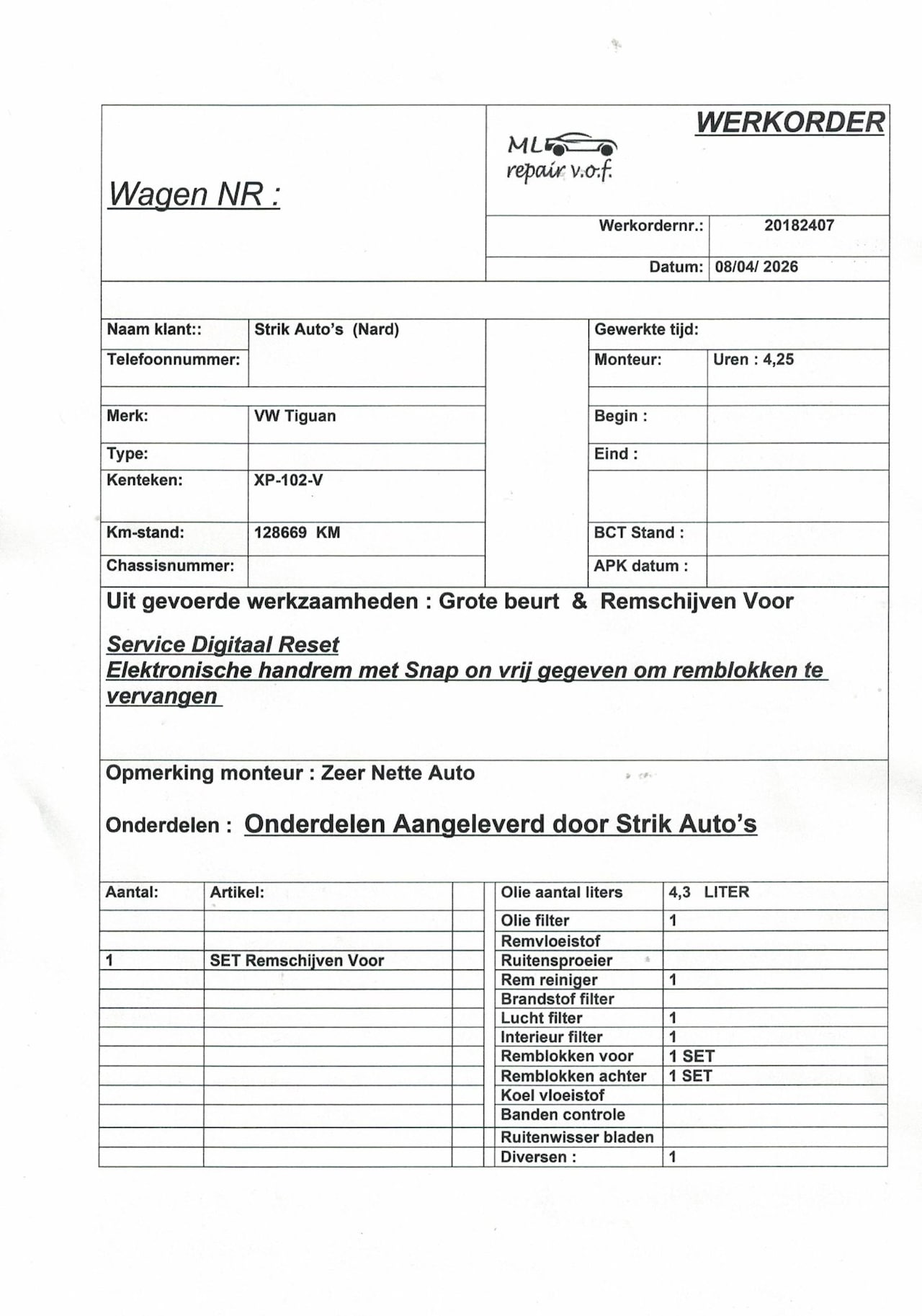 | Kenteken | XP-102-V |
