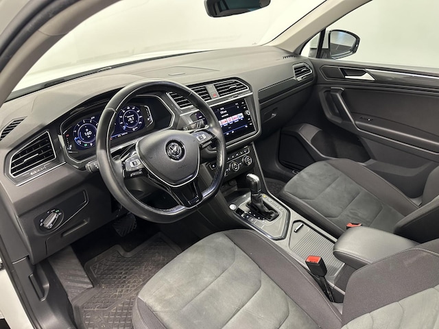 Een Volkswagen voelt altijd vertrouwd: de ergonomie, het veilige gevoel als je achter het stuur zit, alles ademt kwaliteit. Dat geldt voor elke VW en zeker ook voor deze Tiguan. De sportieve en hightech ambiance is geheel te danken aan de R-Line styling. Een belangrijke eigenschap van iedere Volkswagen is zijn duurzaamheid. Dat ziet u ook aan deze Tiguan. Hij heeft een benzinemotor en een automatische transmissie. Dankzij het elektrisch bediende glazen panorama dak lijkt het of u altijd met open dak rijdt, zoveel lichtinval heeft u. Met één druk op de knop te openen, net als trouwens de elektrisch bedienbare achterklep. Stoelverwarming is een plezierige extra in de auto. Binnen de kortste tijd is uw stoel behaaglijk warm. De uitmonstering van deze auto wordt gecompleteerd door onder meer 19 inch lichtmetalen velgen, LED koplampen, sportonderstel, dakspoiler, donker getint glas achter en in delen neerklapbare achterbank.