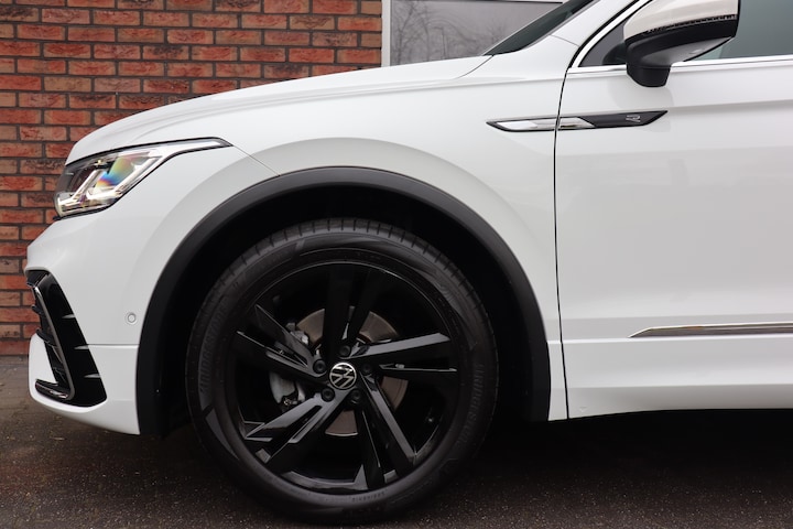 Deze Tiguan is uitgevoerd in de stijlvolle kleur Pure White, die in combinatie met de glans zwarte 19 inch Valencia velgen en het R-Line exterieur zorgt voor een krachtige en sportieve uitstraling. Ook het interieur ademt sportiviteit en luxe dankzij de R-Line afwerking, waarbij comfort en design naadloos samenkomen.