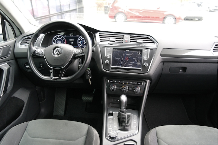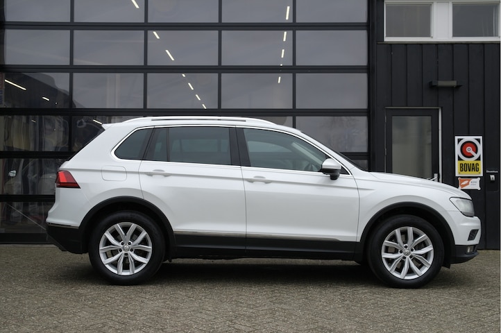 Nederlands geleverde Volkswagen Tiguan 2.0 TSI 4MOTION Highline voorzien van de volgende opties: adaptive cruise control, climate control, stoelverwarming, LED verlichting, carplay, parelmoerlak, getint glas, achteruitrijcamera, navigatie, heap-up display, virtual cockpit, etc.