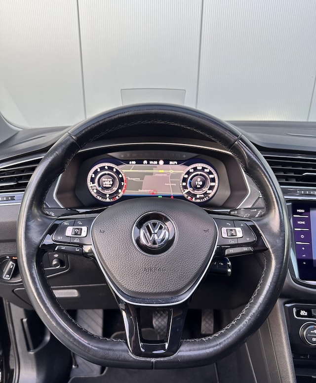 Of u nu achteruit rijdt, parkeert of een smalle straat inslaat, de 360 graden camera op deze auto, mogelijk gemaakt door vier camera's, biedt een perfect beeld van uw omgeving. Adaptive cruise control is veilig en comfortabel. De snelheidsregelaar houdt automatisch afstand tot het voertuig dat voor u rijdt. Appen met uw auto? Geen probleem. U kunt van overal contact opnemen, de functies controleren en activeren. U bedient 'm met remote services. In deze TIGUAN vindt u niet alleen schakelaars op het stuur om het audio-installatiesysteem te bedienen en het navigatiesysteem met harde schijf, maar er is ook spraakbediening. Nooit meer te warm of te koud. De automatische airconditioning zorgt altijd voor de temperatuur die u kiest. Wat u ook in deze auto kunt vinden zijn sportstuur met schakelpaddels, regensensor, dvd-systeem, automatisch dimmende buitenspiegels, centrale deurvergrendeling met afstandsbediening en boordcomputer.