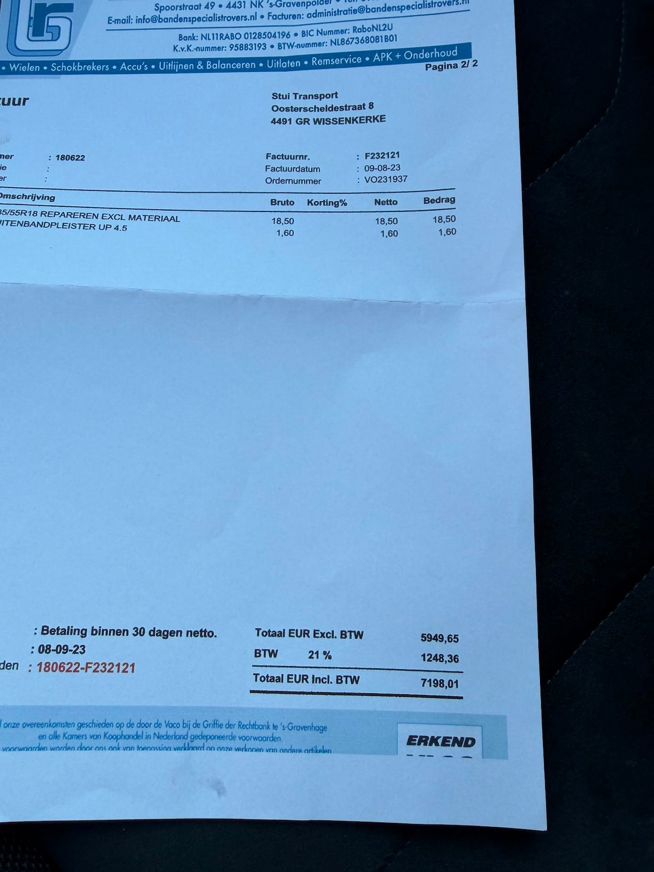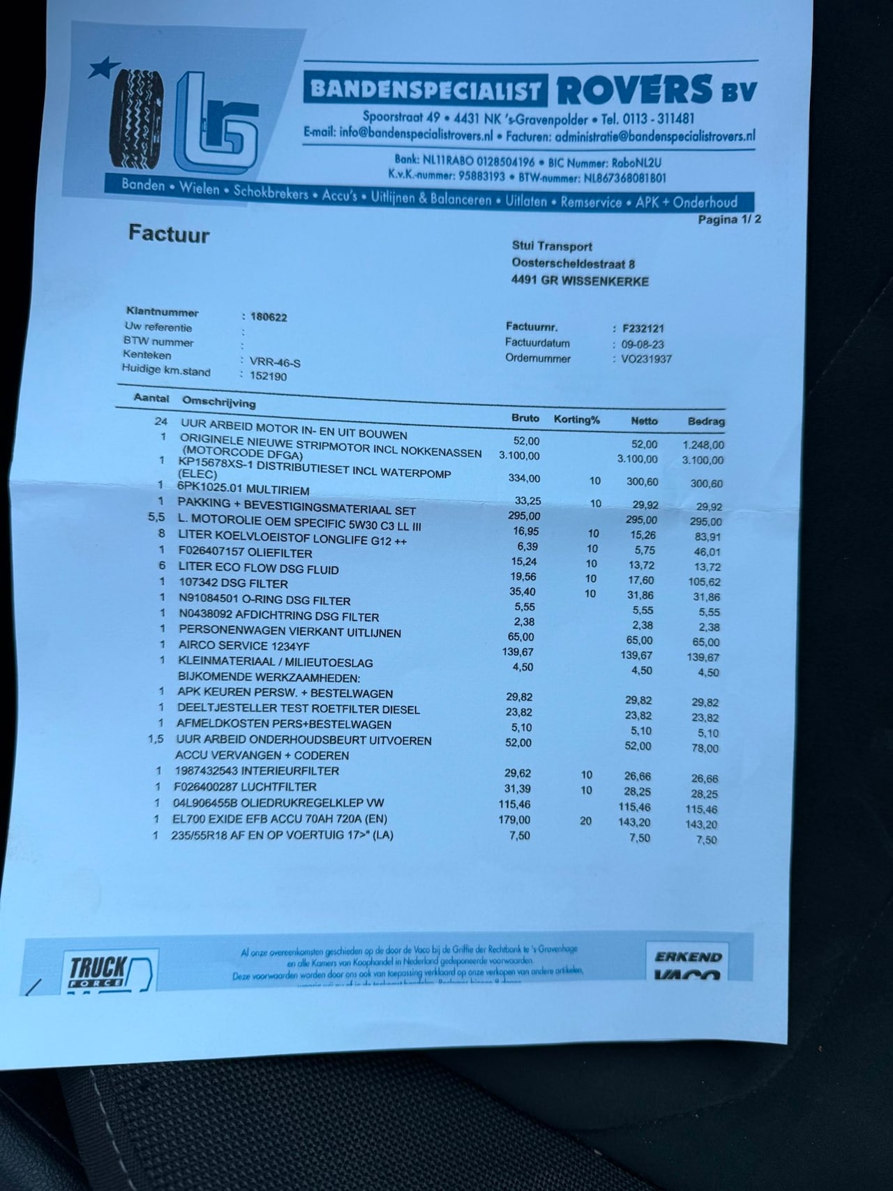 | BTW auto | Ja, excl. BTW |