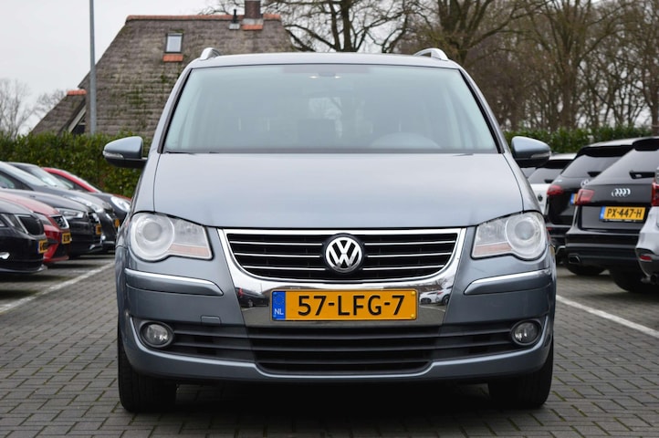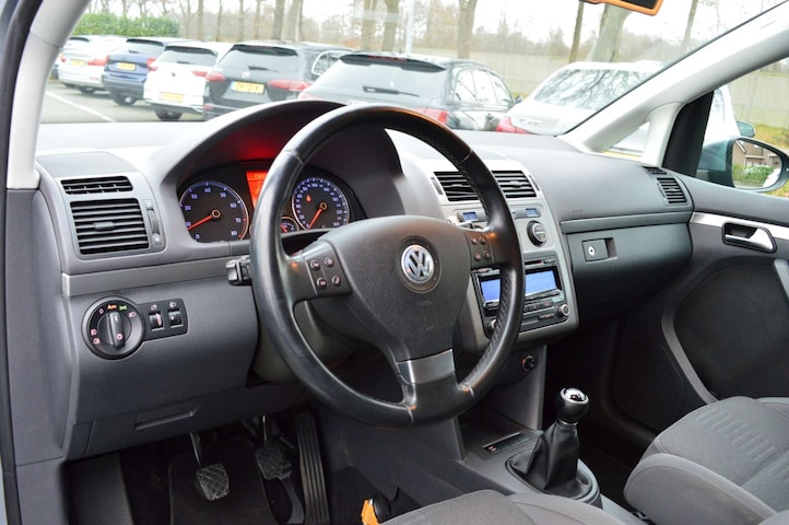 Volkswagen Touran 1.4 TSI Highline 140pk, voorzien van o.a.: xenon verlichting, automatische airco, elektrische ramen voor en achter, multifunctioneel lederen stuurwiel, cruise control, privacy glas achter, mistlampen voor, 16" lichtmetalen velgen, spiegels elektrisch verstelbaar, trekhaak, onderhoudsboekjes ingevuld aanwezig.