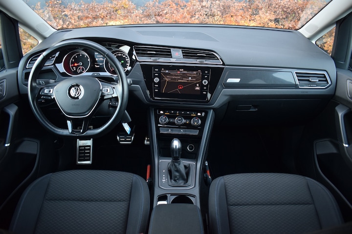 Volkswagen Touran 1.5 TSI 150pk DSG R-line. Uitgevoerd met o.a.: R-line exterieur, Navigatiesysteem 'Discover Media', APP Connect, Digitale radio ontvangst, Climate control (3 zones met airco bediening achter), Adaptieve Cruise control, Lederen multifunctioneel stuurwiel, Stoelverwarming, Lichtmetalen velgen 18", LED koplampen en achterlichten, Privacy glas achter, Parkeersensoren voor en achter, Achteruitrijcamera, Licht en Regensensor, Trekhaak.