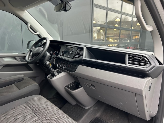 Keurige VW Transporter 2.0 TDI 3-zits voorzien van airco, cruise control, parkeersensoren, Apple Carplay, Android Auto, comfortstoel, achterklep en trekhaak 2.200kg.