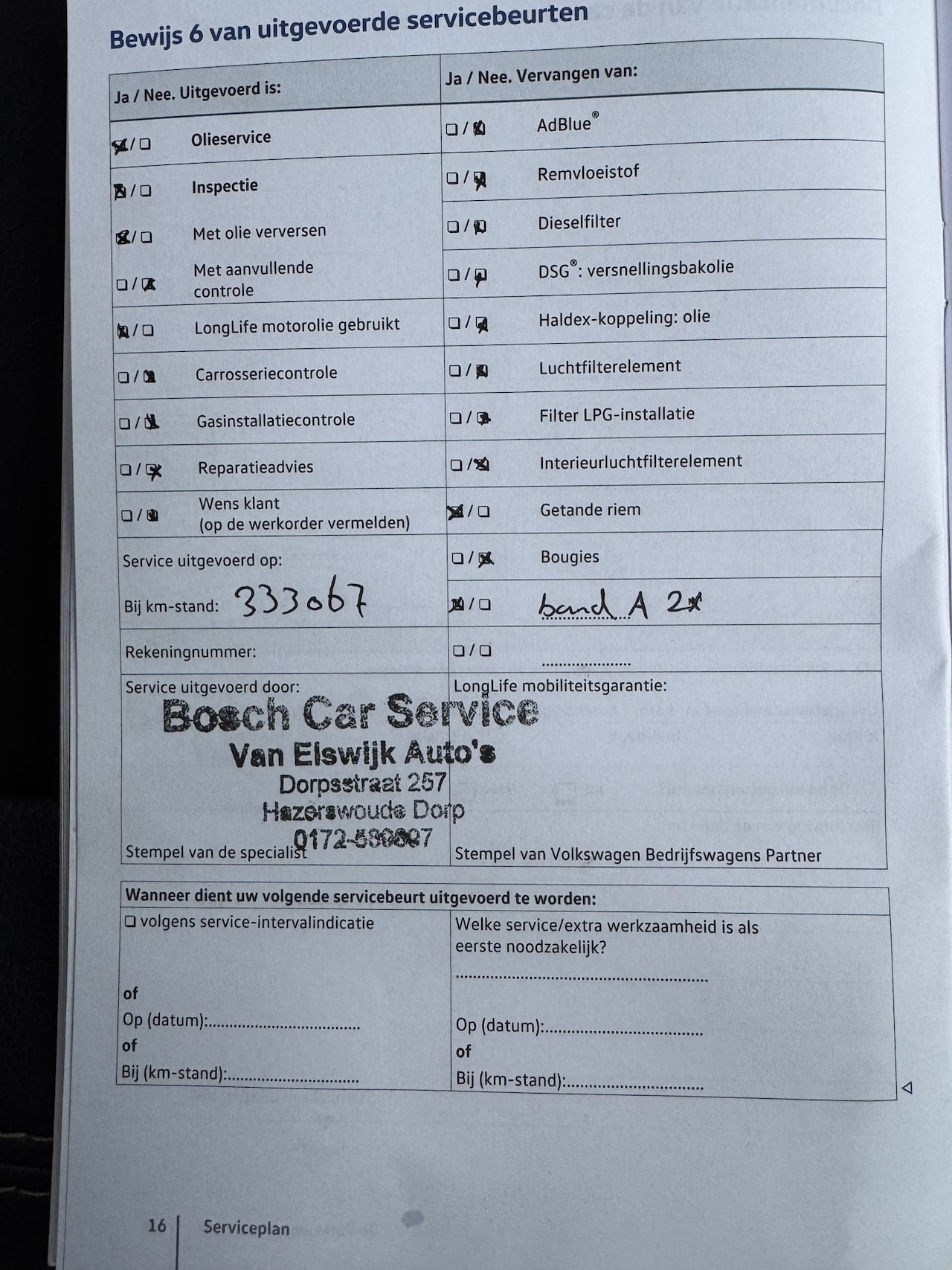 | APK | Bij aflevering |