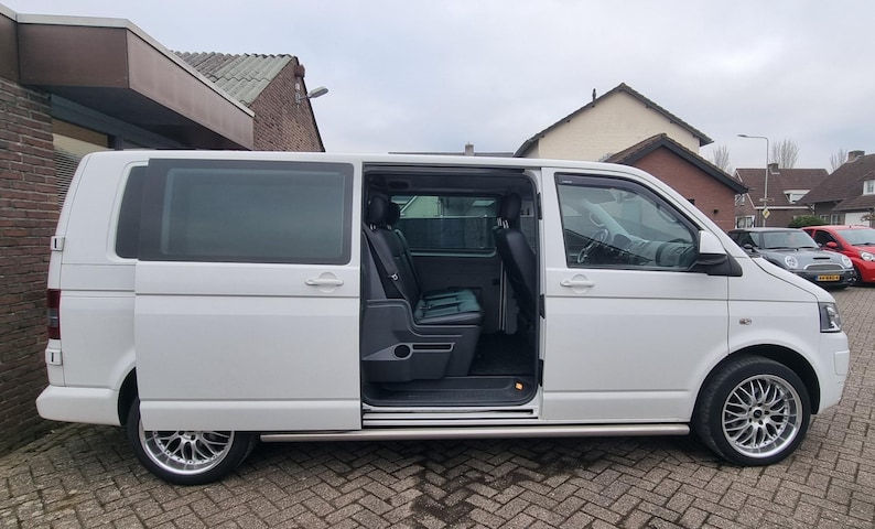 Zeer mooie en compleet uitgevoerde VW transporter automaat 180pk voorzien van 2 schuifdeuren, glazen schuif/kanteldak, verwarmde voorstoelen, navigatie, bleutooth , cruise control, multi functioneel stuur , LED/xenon koplampen , lederen bekleding en nog tal aan meer opties originele NLse bus met NAP