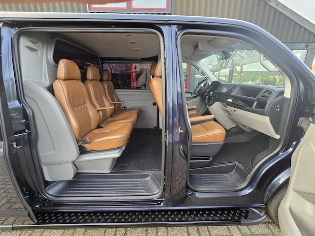 Keurig nette "Dikke" Volkswagen Transporter dubbel cabine in de rijk uitgeruste Highline uitvoering met o,a: Airco, Cruise controle, Dsg automaat, Elektrisch pakket, Full map groot kleuren navigatie, 20 inch Lm velgen, Glaslook panelen, Chroom accenten, Trekhaak, Parkeersensoren voor en achter, Full LED koplampen, Bluetooth telefoon voorbereiding, Schuifdeur links en rechts, Vol lederen interieur, Stoelverwarming, Luxe Multicab cabine met luxe achter stoelen en armsteunen, Android auto, Apple Carplay, enz enz.