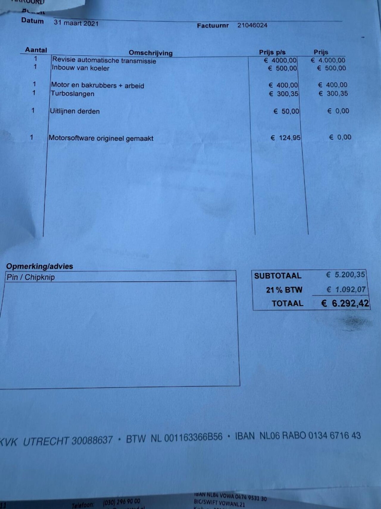 | BTW auto | Ja, excl. BTW |