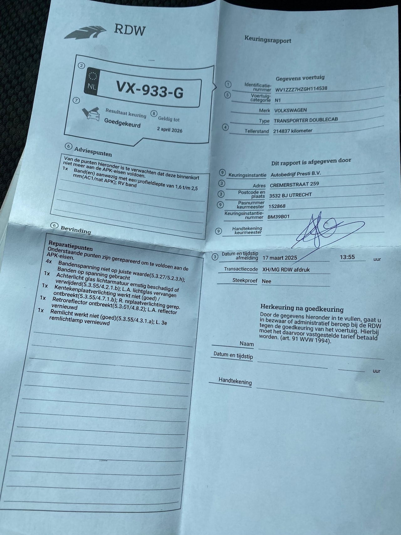 | Kenteken | VX-933-G |