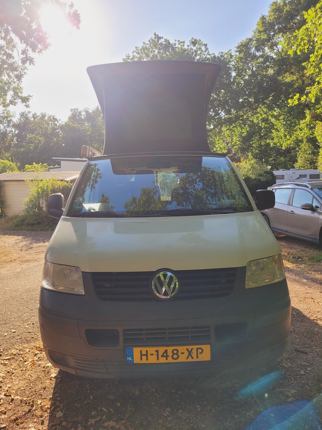 Nette en complete volkswagen transporter Gerrie. Meet Gerrie, deze sterke blije dame en ik hebben de laatste 6 jaar heel wat avonturen beleefd. Maar nu is het voor mij tijd voor wat anders., TDI 62kw uit 2007 (Euro 4) met een kilometerstand van 228.789. (Er wordt nog mee gereden) Ze kan dus nog wel wat jaartjes mee op avontuur., Ze heeft 01-08-2025 nog haar grote beurt gehad en de APK is geldig tot 21-07-2026. Gerrie gaat sinds 12-06-2020 als camper door het leven., Gerrie heb ik in 2020 gekocht bij autobedrijf MSC te diessen., Camperbouwer Marc heb ik het volgende nog laten toevoegen:, - 2 persoons bijrijders bankje met opslag (kluis niet inbegrepen), ondertussen met draaischijf voor extra ruimte en zitplaatsen binnen., matras vervangen in 2025 door traagschuimtopper van 4 cm., - Bear lock slot (papieren en 3 sleutels compleet) geplaatst door Caravan & Camper totaal service Cleijsen te Riel., - Dometic CRX-50 compressor koelkast 12/24v met vriesvak., - Naast deze tonnen is er plaats voor een gasfles, campingaz (niet inbegrepen) en een prullenbakje., - Op maat gemaakt SEMEX matras van Seminautic excellent te Eindhoven. 110x 180, 20 cm dik (Oorsprong en kwaliteits certificaat aanwezig) het matras heeft een mooi hoekje voor het wegleggen van je dekens of zoals in mijn geval een plekje voor de hond., - Het bed beneden is te veranderen in een hoekbank., - Dit matras wordt ondersteund door een ikea lattenbodem. Deze is open te klappen zodat je van binnen in de laadruimte kan., - Onder het bed zit nog een ruime lade en is er op de hoek ruimte voor een Portapotti 345. Portapotti niet inbegrepen want je wilt vast een nieuwe kopen. Naast de portapotie is plek voor Wc benodigheden., via het aanleggen van stroom op caming/camperplaats of (mijn favoriet) via het solar paneel., - Vitron BlueSolar 175WP zo kun je lekker lang off grid staan., - Vitron accu lader smart (proces te volgen in de app), zo is het altijd duidelijk hoe vol je accu zit., - Verschillende stopcontacten zowel normaal als USB., - Alle electra loopt achter de keuken langs door buizen, dus wil je iets vervangen dan is dat makkelijk door te trekken., - Brandmelder en koolstofdioxide melder aanwezig., - Luchtroosters met hor voor beide voorramen., - Alle gebruiksaanwijzingen van de apparatuur heb ik bewaard en wordt meegeleverd., Alle gordijnen heb ik vervangen op mijn reis in Scandinavië in 2024. Natuurlijk heb ik Gerrie naar mijn smaak ingericht. Stoffen en de kleur van de kastjes zijn makkelijk aan te passen naar je eigen smaak., - Waterpomp en distributie riem vervangen in 2021. Weer te vervangen bij km stand 266.249., Gerrie is goed onderhouden en heeft altijd haar keuringen en beurten gehad bij Vakgarage Jac de brouwer te Goirle., Ik heb de gehele garage historie bewaard en die kan ik aan je overhandigen. Zo is het duidelijk wat er wanneer gebeurd en vervangen is. Wel zo fijn!, Gerrie rolt op all weather banden en heeft een reserve wiel onder haar kontje., Op reis heeft Gerrie wat gebruiksschade opgelopen., Heb je vragen of wil je Gerrie eens komen ontmoetten hoor ik het graag.