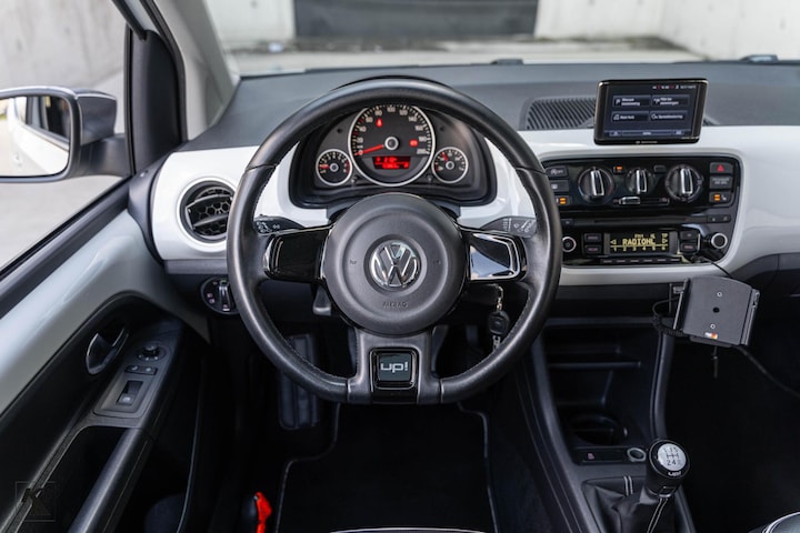Deze Volkswagen Up! 1.0 uit 2012 in de luxe White Up! uitvoering is een compacte en verrassend complete stadsauto met een sportieve uitstraling dankzij de GTI velgen. Met zijn zuinige benzinemotor en opgewaardeerd vermogen tot 85PK biedt hij een prettige rijervaring, ideaal voor zowel stadsverkeer als langere ritten.