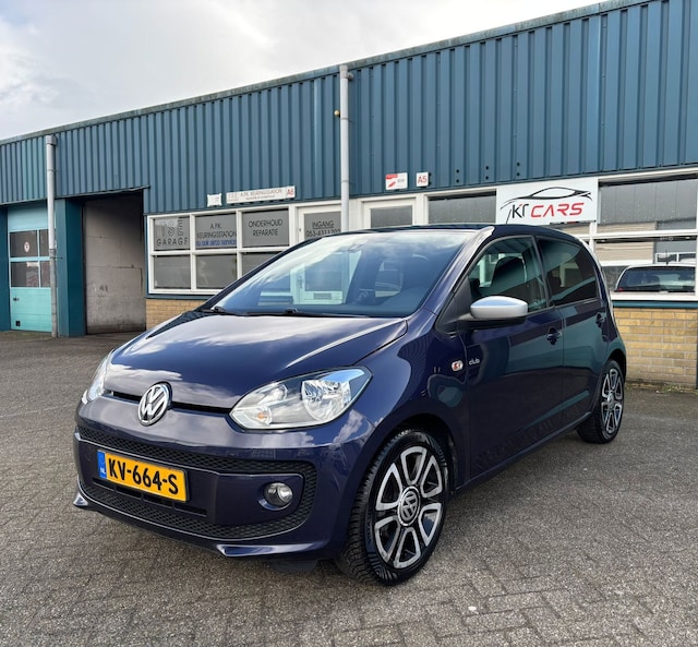 Ontdek de Volkswagen Up! 1.0 high up! BlueMotion in de opvallende kleur blauw. Deze auto is het perfecte maatje voor stadsritten dankzij zijn compacte formaat en lage verbruik van slechts 4.2 liter per 100 km. Met het strak vormgegeven interieur en opties zoals lichtmetalen velgen van 15 inch, een achterbank in delen neerklapbaar en een uitneembaar navigatiesysteem, geniet je van comfort en gebruiksgemak tijdens elke rit. Dankzij de parkeersensoren achter parkeer je moeiteloos en veilig.