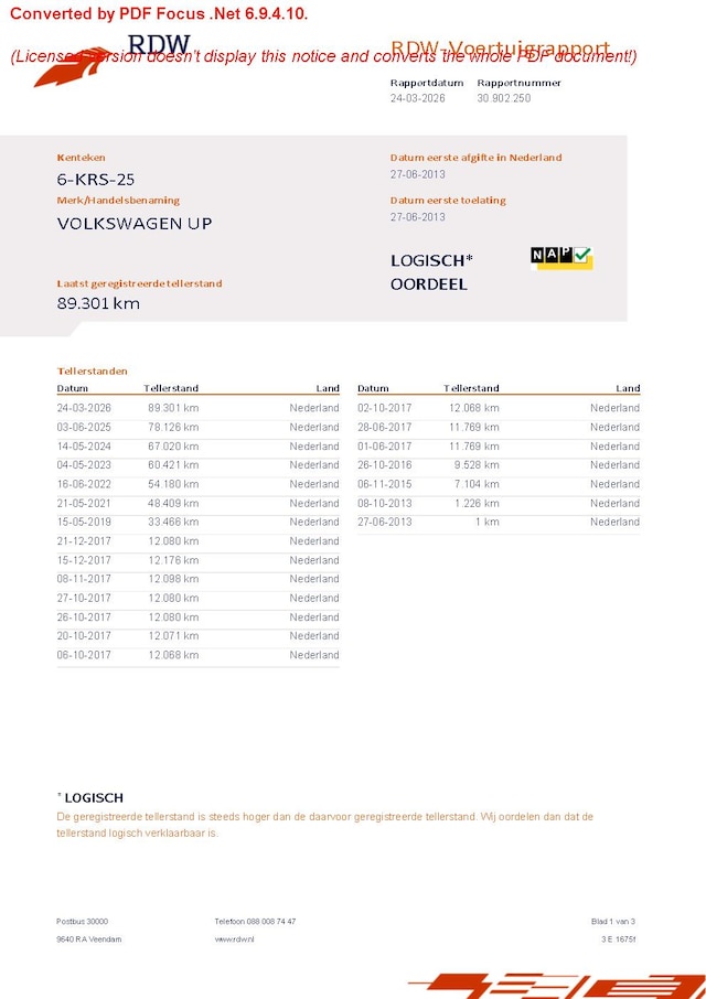 | Kilometerstand | 89.301 km |