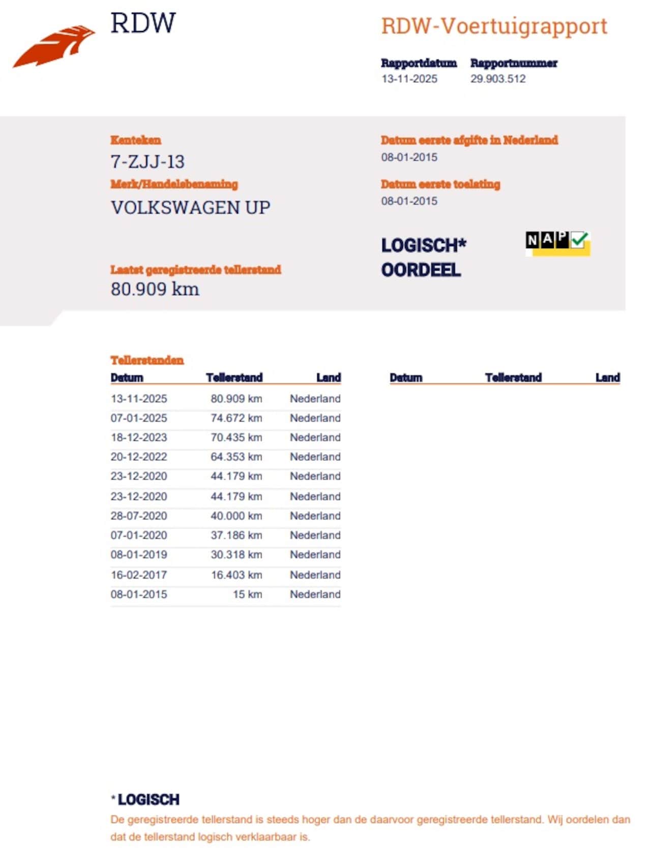 | Kilometerstand | 80.909 km |