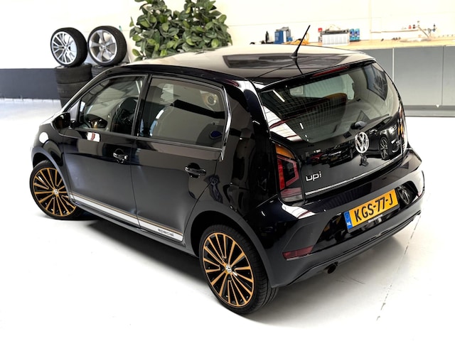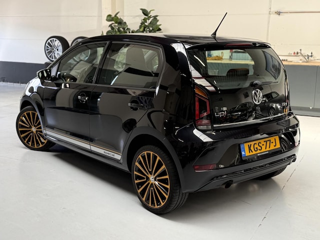 Schitterende Volkswagen Up met de sterke 90PK 1.0 TSI motor en een prachtige 'Gold Special' uitvoering, deze is gekenmerkt door de half alcantara/kunstleder bekleding, Speciale interieurlijsten, 17'' Lichtmetalen Polygon velgen, en decals op de zijkant.