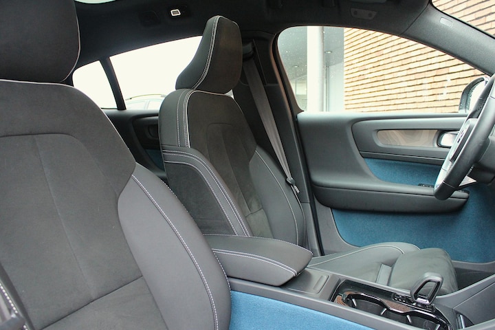 Kijk naar de onvergelijkbare vormgeving. De Volvo C40 is een elektrische auto die zijn bijzondere karakter niet voor de buitenwereld verbergt. Ervaar de kracht en stilte van de elektromotor tijdens het rijden. Bestuurder en bijrijder krijgen een warm welkom: deze Volvo C40 is voorzien van verwarmbare voorstoelen. Prettig zitten maakt elke rit ontspannen dankzij de comfortstoelen. De elektrische achterklep opent met een druk op de knop, zodat u gemakkelijk toegang heeft tot de bagageruimte. Overdag een weidse zichthoek en 's avonds het lichtspel in de binnenruimte: dat geeft het glazen panoramadak! Het verwarmbare stuurwiel is een teken van ultieme luxe. Deze voorziening is een topklasse auto waardig. Dankzij de matrix LED-verlichting geven de koplampen ook in het donker daglicht. Natuurlijk behoren 19 inch lichtmetalen velgen, extra getint glas, in delen neerklapbare achterbank, LED-achterlichten, verstelbare lendensteunen en snelheidsafhankelijke stuurbekrachtiging ook tot de uitrusting van deze complete auto.