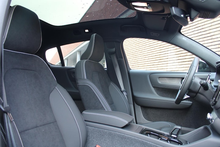 Met deze Volvo EC40 ervaart u alle pluspunten van elektrisch rijden. De elektrische aandrijflijn is stil en soepel en gaat spaarzaam om met energie. De aandrijflijn maakt gebruik van de meest moderne accutechniek, zodat het opladen in zo kort mogelijke tijd gebeurt. Het rijbereik van deze auto is groot genoeg om er de meest voorkomende dagelijkse ritten mee te maken. Doe maar luxe! Neem plaats in de verwarmbare voorstoelen en voel de weldaad in koude dagen. Ontspannen rijden in een optimale zithouding: daarvoor zorgen de comfortstoelen. Een handige voorziening op deze auto is de elektrische achterklep die u op afstand kunt openen. Door het glazen panoramadak heeft u een weidse zichthoek en geniet u van licht en een gevoel van ruimte. Ook in winterse omstandigheden is rijden een plezier, niet in de laatste plaats dankzij het verwarmd stuurwiel. Ook LED koplampen, extra getint glas, in delen neerklapbare achterbank, verstelbare lendensteunen en snelheidsafhankelijke stuurbekrachtiging zijn aan boord.